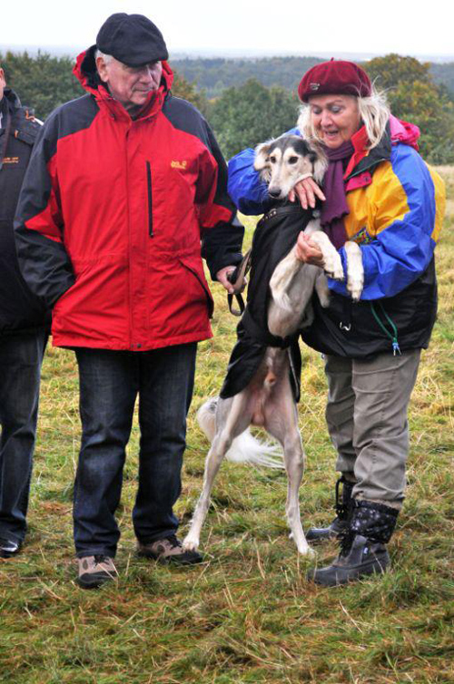 Besonders freute uns aber, dass unser Rüde mit sieben Jahren noch die Bedingungen für den „Internationalen Coursing-Champion“ beenden konnte, weil er in Ostercappeln dieses Intern. Coursing gewann. Ein Titel, den nicht jeder bekommt, der nicht direkt im Dreiländereck wohnt. Alles das zeugt von einem gleich bleibenden hohen Leistungsvermögen unseres Rüden während seiner Coursing-Karriere und das über viele Jahre lang. „Hund und Herr“ hatten somit nicht nur die täglichen Spaziergänge durch Wald und Flur als gemeinsames Hobby und körperliches Training, sondern ihnen standen ebenso die Coursingfelder in Deutschland sowie im benachbarten Ausland zur Verfügung. Dort fuhren sie hin, übernachteten im Hotel und konnten viele nette, gleich gesinnte Menschen treffen, mit denen sie nette Stunden verbrachten.