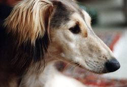 Dann lernte ich Frau Dr. Helga Renfordt kennen. Sie war mir sofort sehr sympathisch. Ich konnte auch erfahren, dass sie ihre Salukis nicht nur auf Ausstellungen, Rennen und Coursings einsetzt, sondern ebenso als Therapiehunde bei Kindern mit gestörtem Sozialverhalten. Das fand ich besonders interessant, da ich mich mit diesem Thema auch beruflich beschäftigt hatte. Auch sah ich das Zuchtziel "Schönheit und Leistung" in dieser Zuchtstätte im besonderen Maße erfüllt.