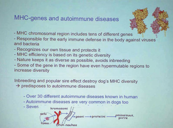 Fig. 7: MHC genes and autoimmune diseases - Inbreeding and "popular sire effect" destroy the dog's MHC diversity predisposing it to autoimmune diseases.